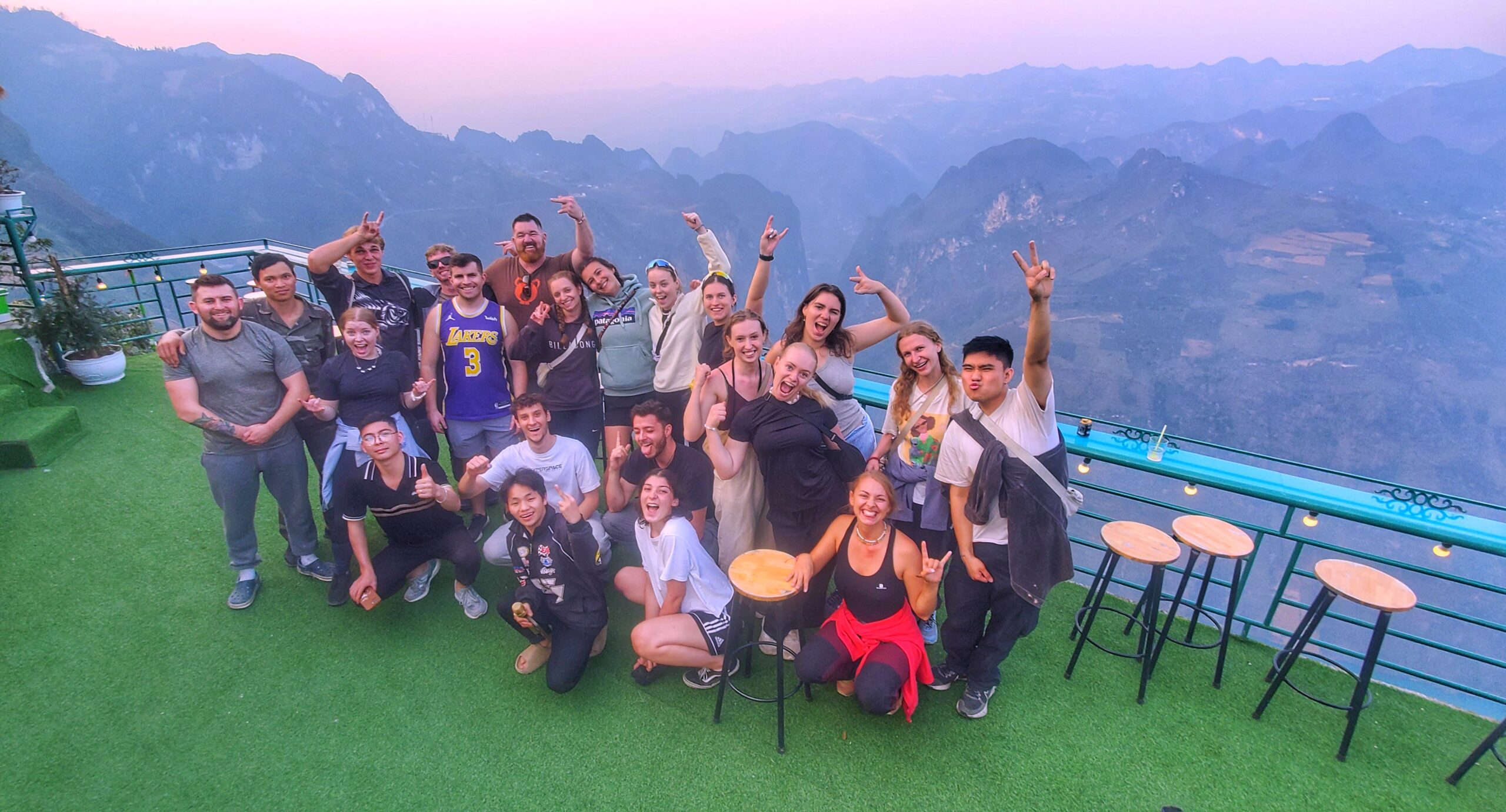 Immerse yourself in the fiery red sunset from the Lao Va Chai mountain observation deck, where the sky blazes with brilliant hues! A super viewpoint 360 degrees with magnificent natural landscape including pine tree forest, grass fields, terraced rice paddies,endless layers rocky mountains, and small winding roads.  “Imagine sharing your impressions of the Ha Giang Loop, and you simply cannot miss out on describing the breathtaking scenery at this spot.”