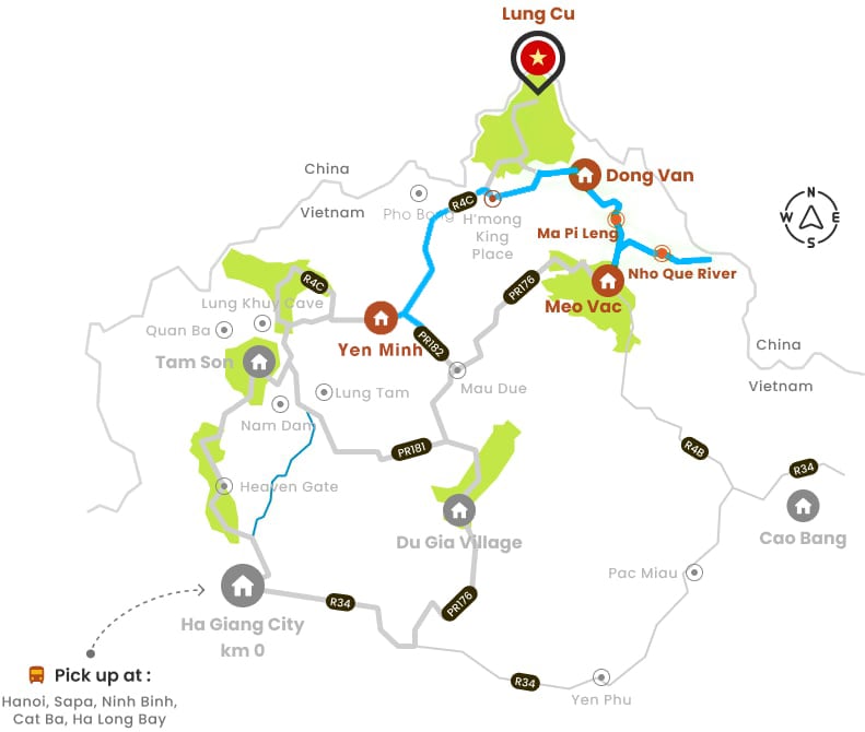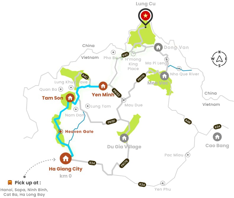 Pick-up location: The car or bus will pick you up near or directly at your hotel/homestay from Ha Noi, ensuring a smooth departure to Ha Giang.