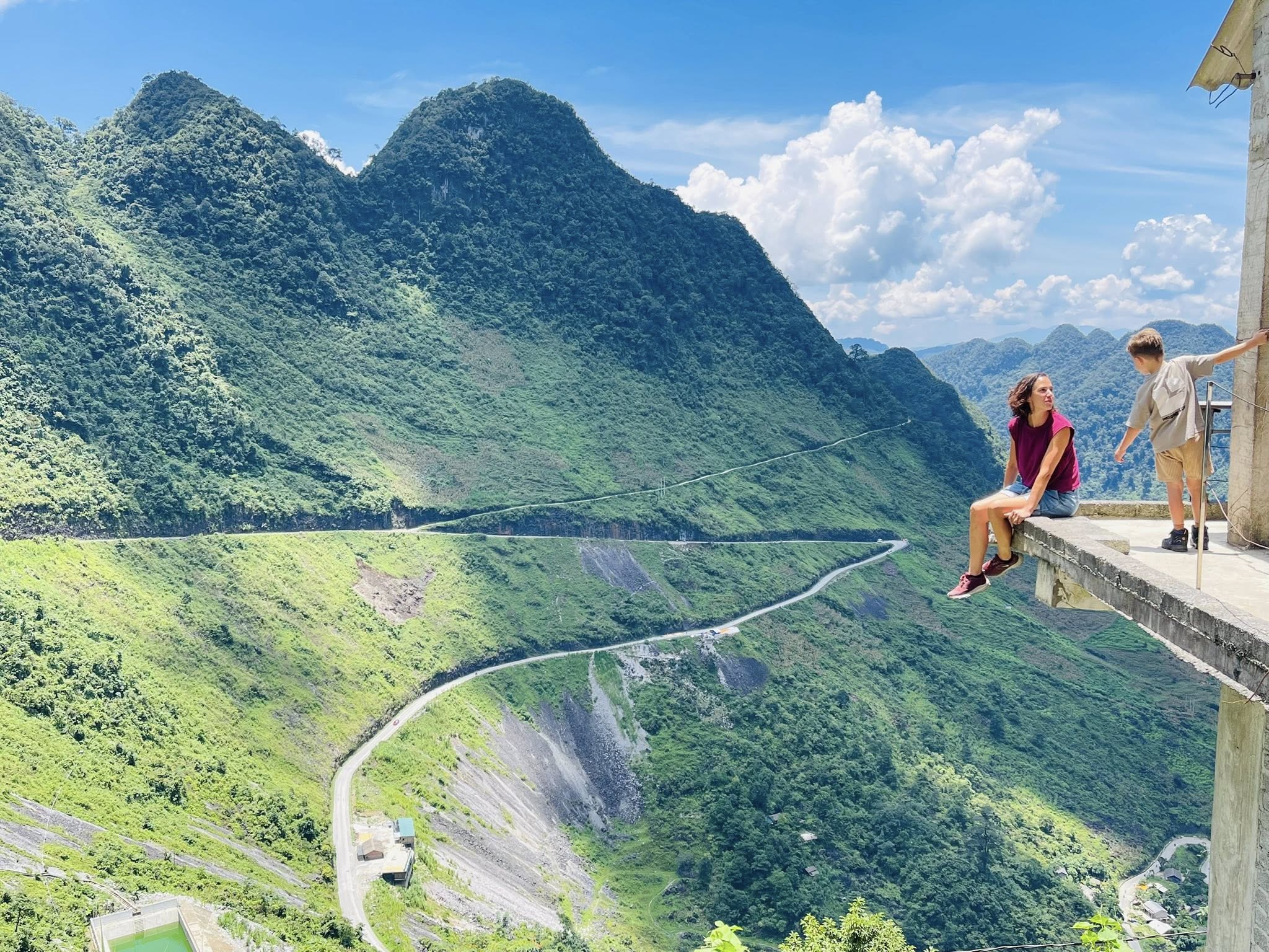 The road from Thai An back to Ha Giang city winds through dramatic canyons and steep cliffs, with deep abysses opening up beside the path. At certain points, you can even catch sight of the massive walls of a hydroelectric dam, standing in stark contrast to the wild mountain landscape.