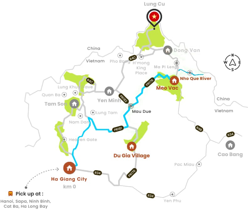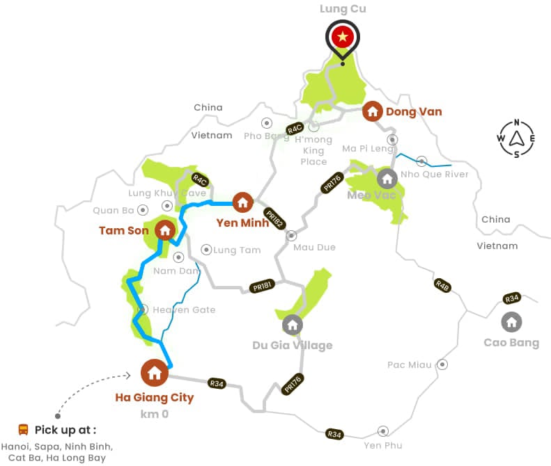 Pick-up location: The car or bus will pick you up near or directly at your hotel/homestay from Ha Noi, ensuring a smooth departure to Ha Giang.